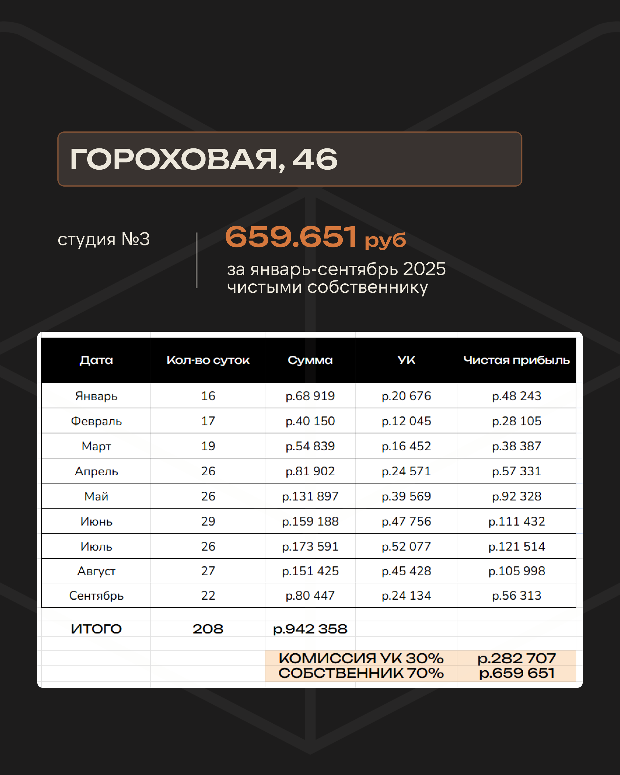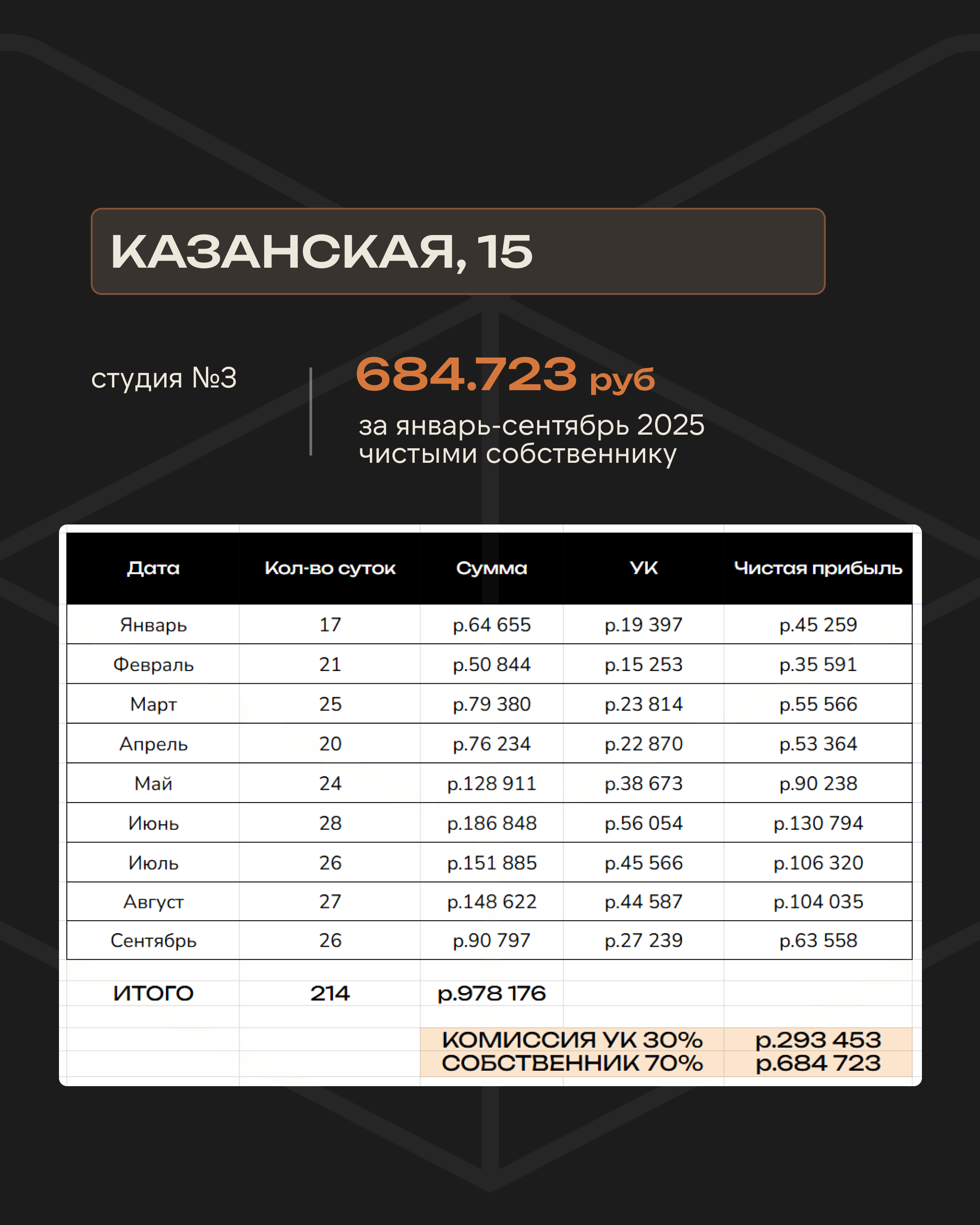 Наш формат отличается не только индивидуальной работой с каждым отдельным объектом, но и стабильностью дохода: